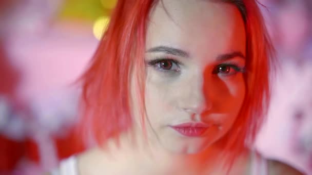 Charming Portrait Of A Adorable Girl With Short Pink Hair Looking Straight At Camera Big Deep Eyes https://depositphotos.com/232530372/stock-video-charming-portrait-of-a-adorable.html