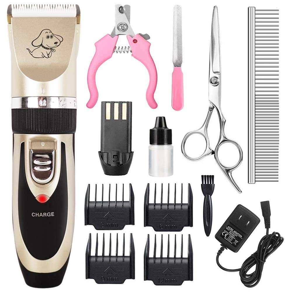 Cahtuoo Dog Grooming Clippers Professional Pet Grooming Kit Rechargeable Pet Shaver Cordless Silent Dog Hair Trimmer With 4 Comb Attachments 4 https://www.amazon.com/CAHTUOO-Dog-Professional-Rechargeable-Attachments/dp/B07BK62R1L