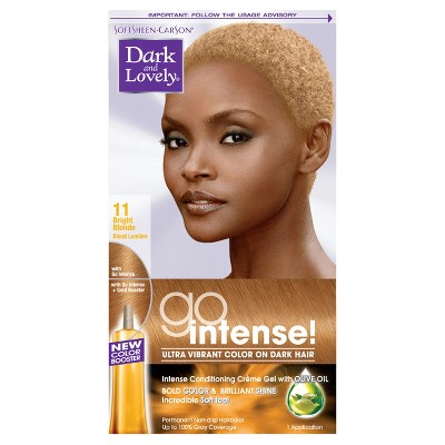 Dark Lovely Go Intense Permanent Non Drip Haircolor 11 Bright Blonde 1 Kit https://www.target.com/p/dark-lovely-go-intense-permanent-non-drip-haircolor-11-bright-blonde-1-kit/-/A-49108979